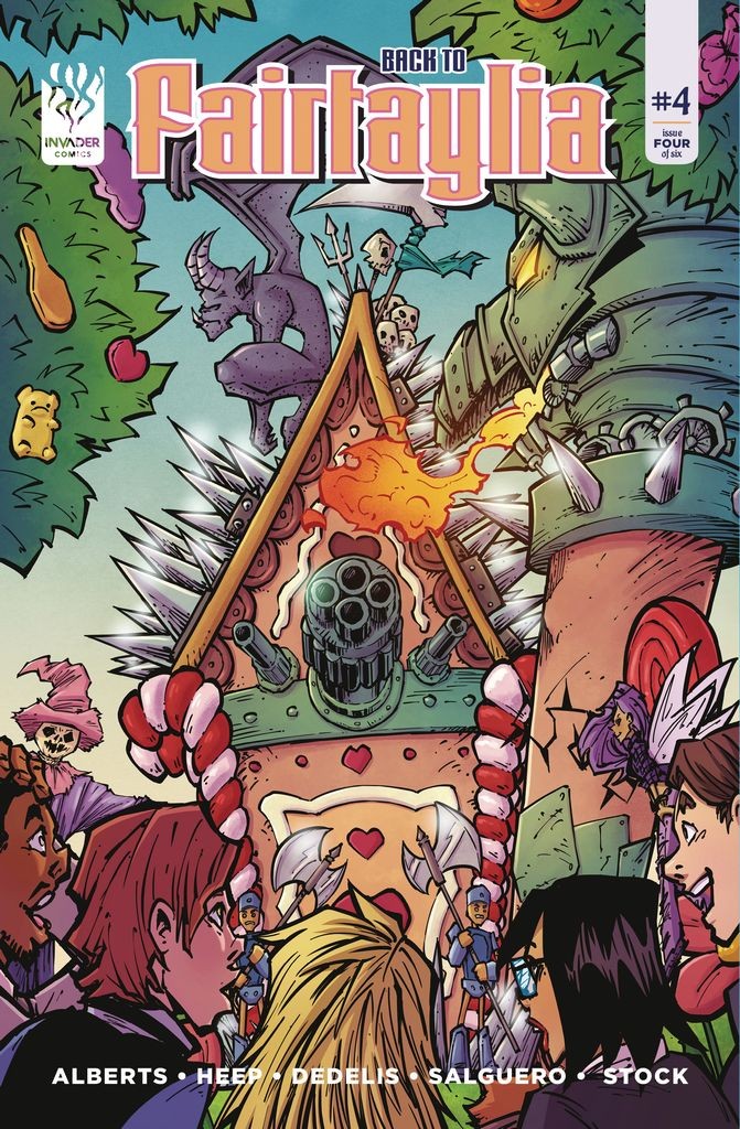 The gang manages to get Back to Fairtaylia with a bang (literally!) only to find that the Queen has Sorrow has stolen the Heart of Fairtaylia (also literally!) Now they must get it back before it turns black and Fairtaylia is lost forever. But before they can embark, something huge stands in their way (again, also literally), and the shocking ending to this brutal issue will have you clamoring for the conclusion!
