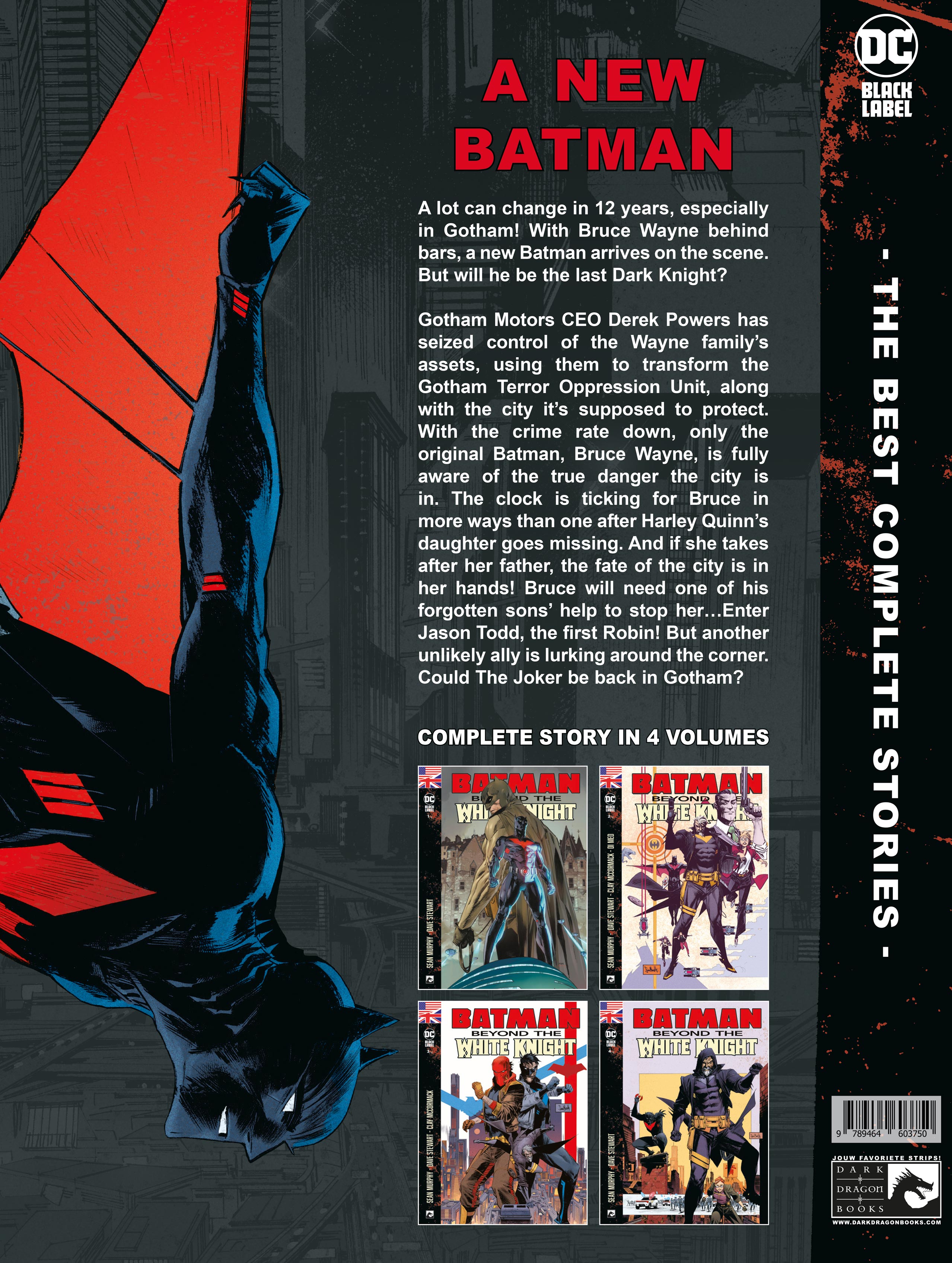 Engelse uitgave Er kan veel veranderen in 10 jaar, vooral in Gotham! Batman zit dan wel achter de tralies, maar de echte criminelen zijn er nog steeds. Derek Powers, CEO van Gotham Motors, heeft de,bezittingen van de familie Wayne overgenomen en gebruikt deze om de stad te beschermen. Criminaliteit daalt, maar tegen welke prijs? Er is een nieuwe Batman opgedoken in de stad van Powers, en alleen Bruce is zich volledig bewust van de gevaren die daaraan kleven. Het is tijd om de cape voorgoed te vernietigen !