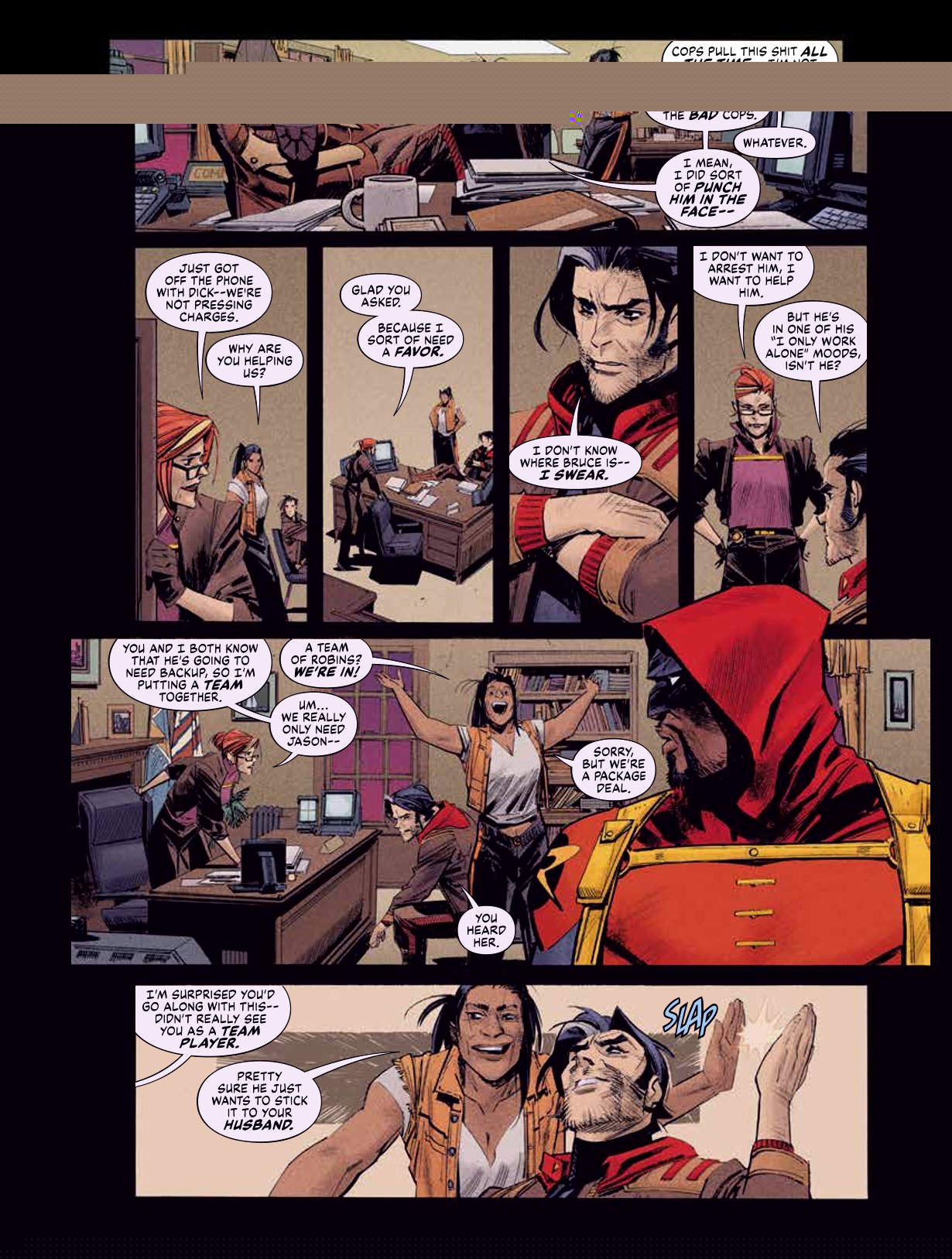 A NEW BATMAN A lot can change in 12 years, especially in Gotham! With Bruce Wayne behind bars, a new Batman arrives on the scene. But will he be the last Dark Knight? Gotham Motors CEO Derek Powers has seized control of the Wayne family’s assets, using them to transform the Gotham Terror Oppression Unit, along with the city it’s supposed to protect. With the crime rate down, only the original Batman, Bruce Wayne, is fully aware of the true danger the city is in. The clock is ticking for Bruce in more ways than one after Harley Quinn’s daughter goes missing. And if she takes after her father, the fate of the city is in her hands! Bruce will need one of his forgotten sons’ help to stop her...Enter Jason Todd, the first Robin! But another unlikely ally is lurking around the corner. Could The Joker be back in Gotham? Tekst & tekeningen: Sean Murphy ISBN 3/4. 9789464604474 Softcover 64 blz.