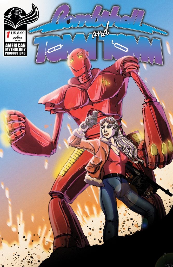 It's 1938 in Amesbury, England. While performing aerial stunts in the Aerobatique Show for her adoring fans, American Pilot, Samantha 'Bombshell' Cartwright's, aeroplane is struck by a meteorite. After safely landing her Curtiss P-40, curiosity gets the better of Sam and she goes to investigate the meteor's crash site. What Sam finds is more than she bargained for: an 8 foot tall Automaton, who she will eventually call 'TommTomm'. Not able to communicate, TommTomm becomes Sam's body guard as they along with MI-5 Agent Terrence Wilkinson and MI-5 Scientist, Professor Graham Rockwell encounter Nazi spies, ancient religious artifacts and alien races. Bombshell and TommTomm is a fast paced, action packed, adventure comic, like the kind you used to love. Come along for the ride, you won't be disappointed!