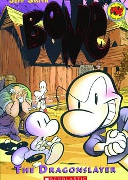 Fone Bone confronts a host of dangers The Dragonslayer. He and Gran'ma Ben and Thorn have a terrifying encounter with Kingdok, ruler of the rat creatures. The Hooded One is inciting his army to full-scale war. Someone is continuing to haunt Thorn in her dreams. And then wise Gran'ma Ben disappears. To make matters worse, Phoney Bone has hoodwinked the townspeople into believing that he is a mighty dragonslayer. When he actually does catch the Red Dragon - much to his surprise - he must face up to his promise: to slay the dragon at sunrise.