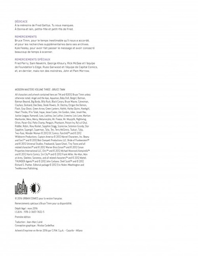 Artiste emblématique du comic book, mais aussi et surtout su petit écran, Bruce Timm fait aujourd'hui figure de référence. Créateur de l'une des séries animées les plus adoubées par la critique et acclamées du grand public - Batman : La série animée - et de récits devenus cultes - Mad Love, Gotham Girls -, il est une source d'inspiration intarissable pour bon nombre de scénaristes et de dessinateurs. Cette interview illustrée offre l'opportunité exclusive de découvrir l'homme derrière l'artiste, le petit garçon passionné derrière l'icône, et d'en apprendre toujours plus sur les aventures qui ont marqué toute une génération. Un témoignage en toute simplicité, dans l'intimité d'une légende.