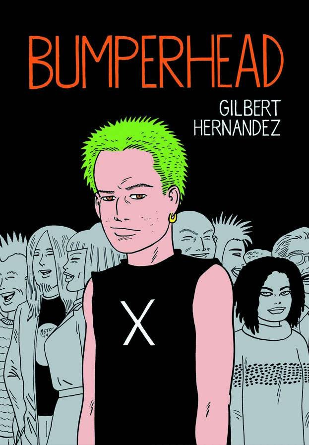 Love and Rockets cartoonist Gilbert Hernandez returns with Bumperhead, a companion book to Marble Season. Gilbert's new book follows Bobby, a young slacker who narrates his life as it happens but offers very little reflection on the events that transpire. Bobby lives in the moment exclusively, and is incapable of seeing the world outside of his experiences. He comes of age in the 1970s, making a rapid progression through that era's different subcultures; in a short period of time he segues from a stoner glam-rocker to a drunk rocker to a speed-freak punk. He drifts in and out of relationships with friends, both male and female. Life zooms past him. Hernandez's approach captures the numbness and raw undirected anger and passion of a young man; a young man who waits for life to happen to him, not noticing all the while that it's happening.