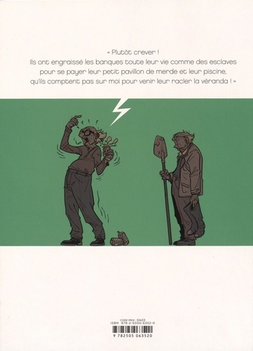 «Plutôt crever!» Ils ont engraissé les banques toute leur vie comme des esclaves pour se payer leur petit pavillon de merde et leur piscine, qu’ils comptent pas sur moi pour venir leur racler la véranda !».