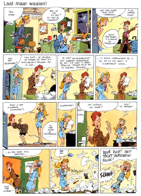 Wie werd er nooit als patiënt opgenomen in een kliniek zonder echt te beseffen wat zich daar achter de schermen afspeelt? Gelukkig maar, want als je Bercovici en Cauvin moet geloven, ontbreekt het in de wit gesteven wereld van chirurgen, verpleegsters en andere gezondheidsspecialisten niet aan cynisme of zotternij. Om het nog niet te hebben over de blunders die er worden begaan. Het is misschien een moeilijk onderwerp, maar deze reeks grappen verzoent ieder van ons met de wereld achter de ziekenhuisdeuren, waar we hoe dan ook ooit in terechtkomen. En dan kun je er maar beter om lachen. Toch?