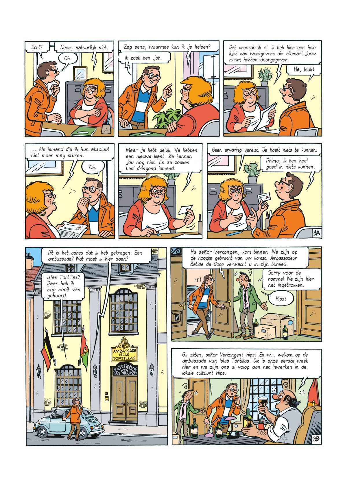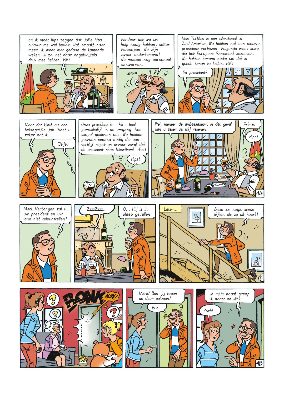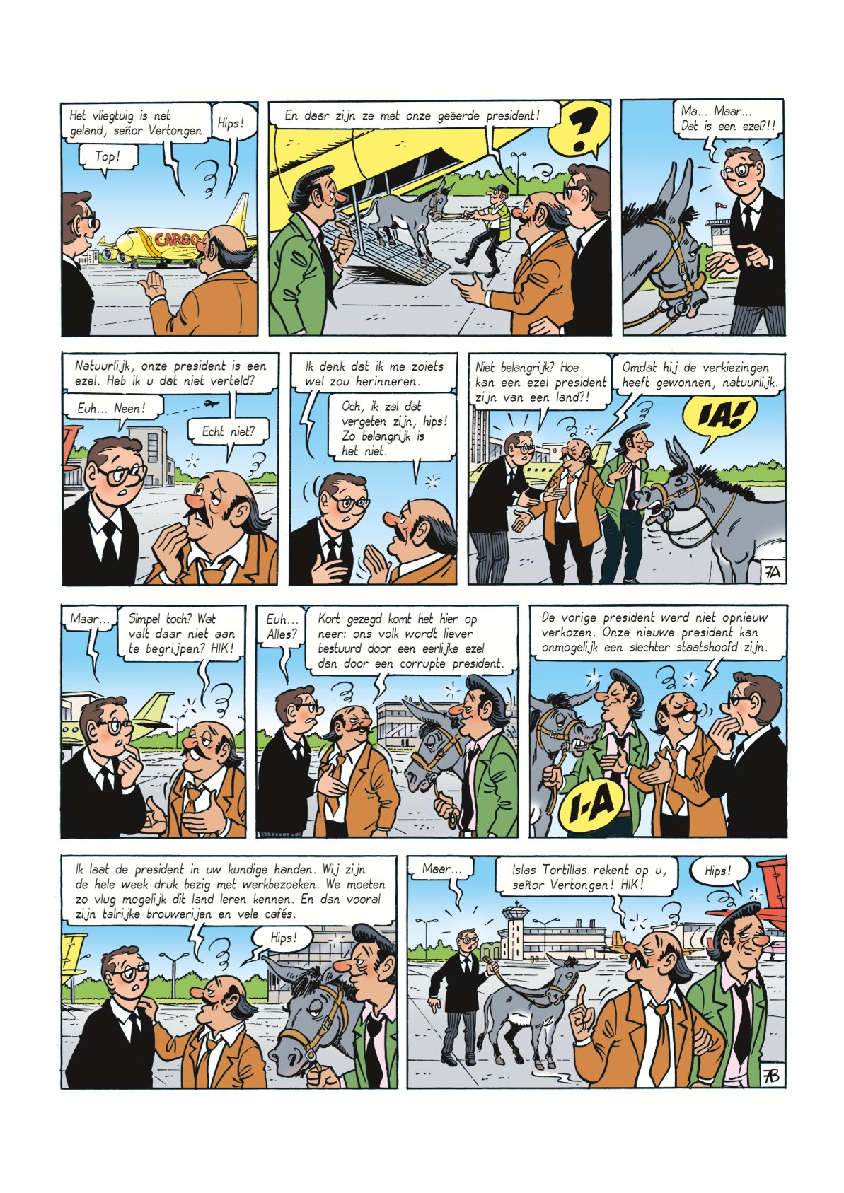 Mark moet van Bieke dringend een job zoeken. Die vindt hij al vrij snel als medewerker op de ambassade van Islas Tortillas. De president van dat land komt op bezoek en Mark moet voor hem zorgen. De president blijkt echter een… ezel te zijn! Tijdens de laatste verkiezingen hebben de kiezers deze verkozen boven de echte politici. Mark moet het beste maken van de ongewone situatie. In het Zilton Hotel blijkt de president niet welkom te zijn in de presidentiële suite. De ezel belandt dan maar op de weide achter het huis van Fernand. Mark moet vervolgens het bezoek van de president aan het Europees Parlement regelen, maar er duikt een huurmoordenaar op...