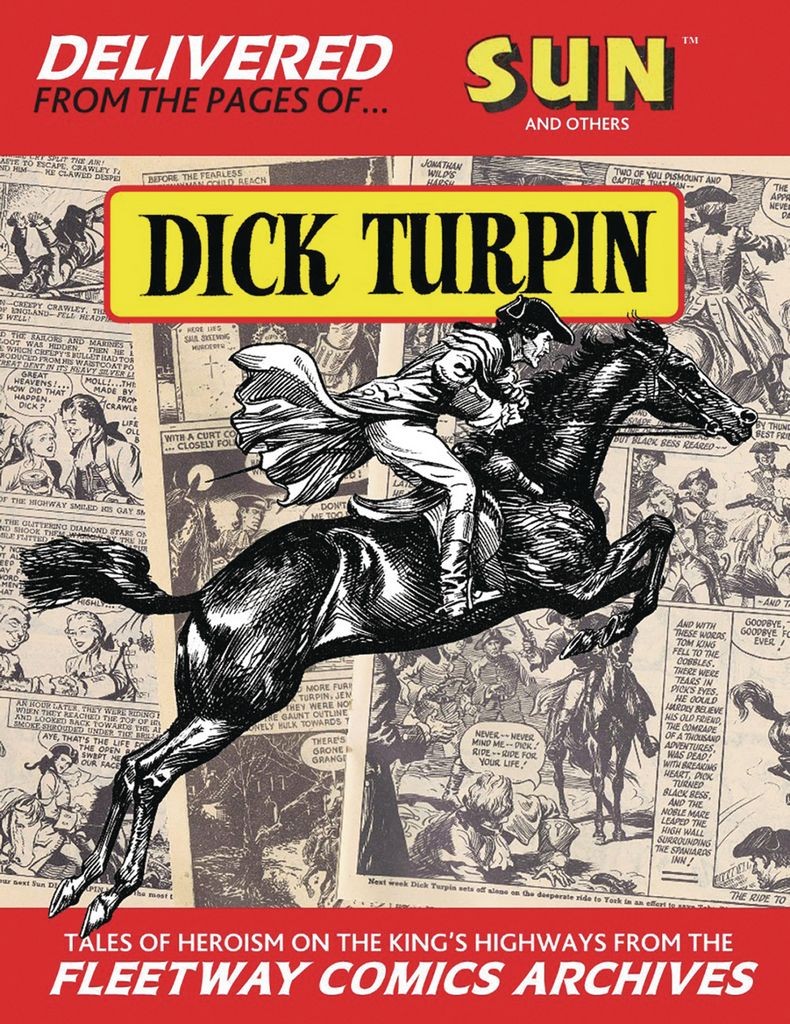 Tales of Heroism on the Kings Highways from the Fleetway Comics Archives Complete Dick Turpin comic strips from Sun, Comet and Thriller Picture Library comics from the 1950s. This collection comprises the cream of Dick Turpin strips published during the halcyon days of the Amalgamated Press. Within its pages the work of such masters of their craft as Derek Eyles, Hugh McNeill, Eric Parker, H. M. Brock, Jesus Blasco, Eric Bradbury and Cecil Doughty. SUN 167 Highway Days by HM Brock 205 - 215 The Phantom Highwayman by Hugh McNeill 216 - 227 The Mystery of Misty Moor by Hugh McNeill 252 - 264 The Mystery of Creepy Crawley by Hugh McNeill 265 - 268 The Return of Creepy Crawley by Edgar Spenceley 301 - 320 Ride to York by Derek Eyles 485 - 489 The Path of Peril by Eric Bradbury 490 - 499 The House Vengeance by Jesus Blasco THRILLER PICTURE LIBRARY TPL 85 For Justice and the Right by Cecil Doughty COMET 394 - 406 Phantom of Gravestone Grange by Geoff Campion/Eric Parker