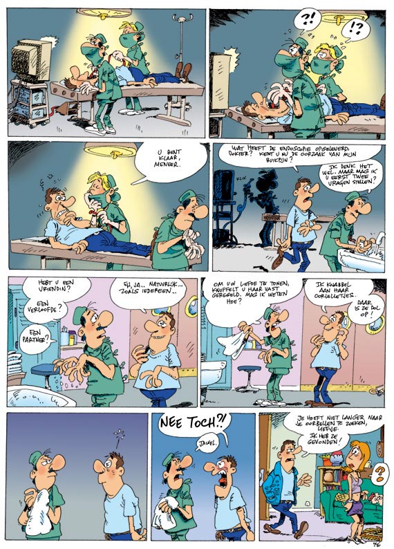 Een verblijf in het ziekenhuis is niet alleen een fysieke lijdensweg. Ook moreel krijg je vaak een paar klappen. Daarom hebben de auteurs voor hun fans in dit negenentwintigste deel een paar belangrijke adviezen: denk twee keer na voor je je laat opereren, zorg ervoor dat je dochter onder geen enkel voorwendsel in de verpleegkunde gaat, luister niet naar alle wilde verhalen die verpleegsters verzinnen en ga nooit samenwonen met een 'vrouw in het wit'. Binnen de kortste keren zit je ijskast vol met donororganen ... En als je een verpleegster met handen en voeten moet uitleggen ... Zorg er dan voor dat je alles weer terugkrijgt.