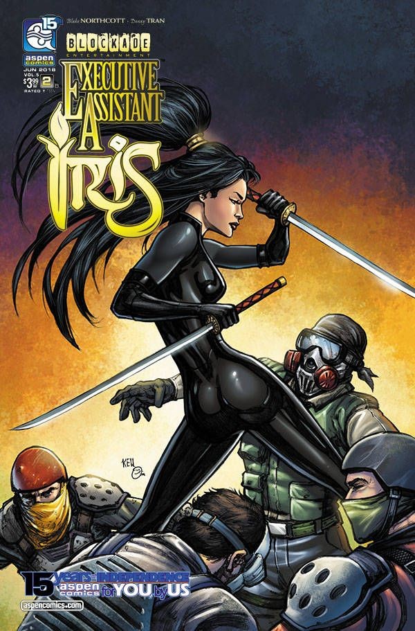Aspen Comics' hit action-adventure assassin series marks its 10-Year Anniversary with a brand new pulse-pounding volume! Iris and Mack's first assignment as a team doesn't go as planned, as chaos erupts when a protest turns deadly violent, and they must improvise to save an innocent man (and themselves) from hundreds of armed thugs! Plus, things get explosive! Brought to you by acclaimed author Blake Northcott (Michael Turner's Fathom) with art by newcomer Donny Tran and colorist Luis Guerrero, this newest pulse-pounding 10 year anniversary chapter of Executive Assistant: Iris is sure to be the greatest volume yet!