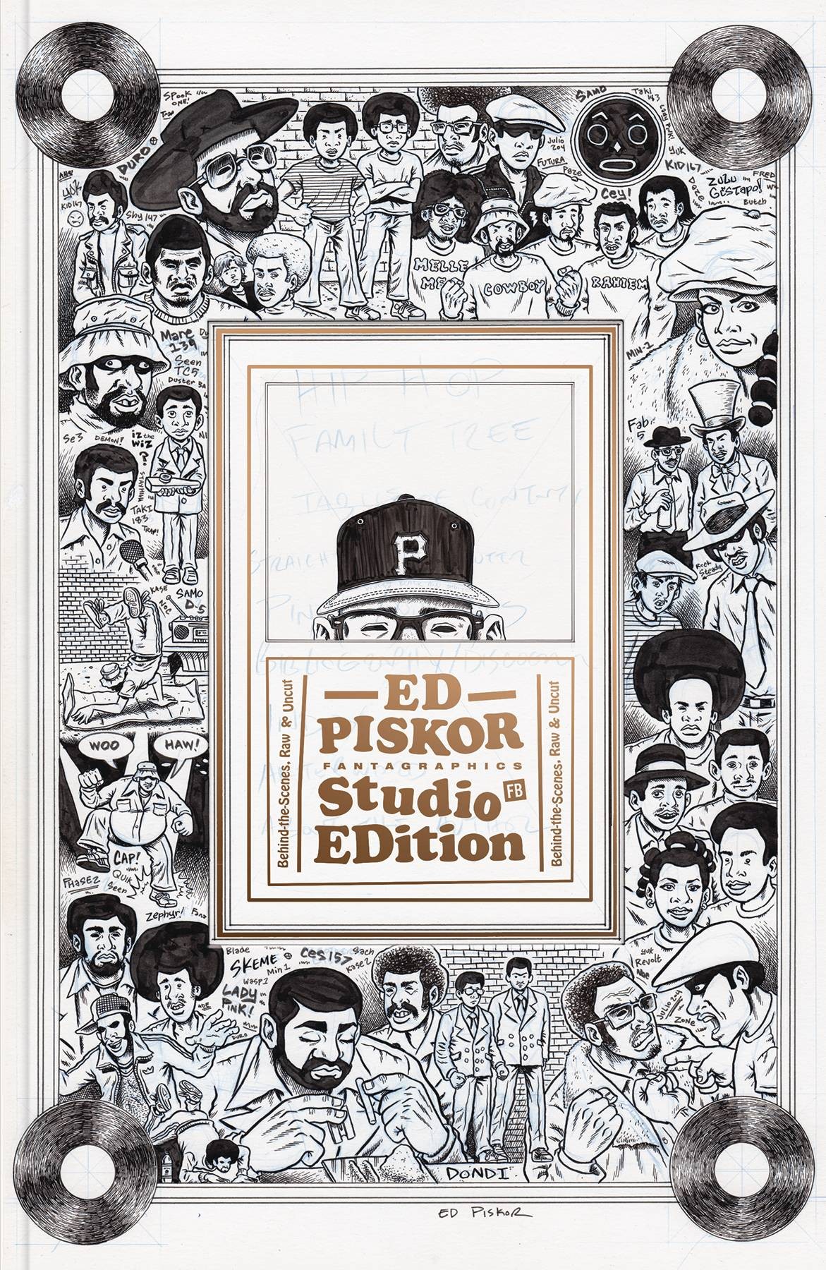 From Public Enemy to Professor X, this collection of scans of raw, un-retouched original art gives insight into the creative and drawing processes of the best-selling, award-winning Hip Hop Family Tree Tree/X-Men graphic novelist. This career overview of one of comics' greatest creators collects raw, un-retouched original pages from the best-selling series Hip-Hop Family Tree and X-Men: Grand Design, and includes commercial art, designs for a line of Public Enemy action figures, and much more. It features over 150 pages of exact facsimiles of the artwork sitting on Piskor's drawing table, at the exact size created, scanned in full color to showcase every detail in the artist's process - from blue pencil, to Wite-Out, to swaths of deep, inky blacks. Each piece is annotated by Piskor personally. It's like sitting in the author's studio! A must-have book for students, educators, and collectors.