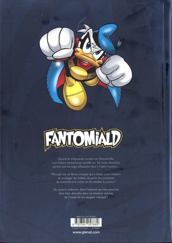 Tout sur le plus célèbre justicier de Donaldville ! Quand la nuit tombe sur Donaldville, une ombre mystérieuse bondit de toit en toit, dévoilant parfois sa silhouette face à l'astre lunaire... Mais qui est ce héros masqué qui a choisi de combattre les puissants pour venir en aide aux faibles ? Un canard ordinaire et tout sauf vilain dont l'identité secrète risque bien d'être dévoilée quelque part dans ce huitième volume d'une intégrale consacrée à Fantomiald, le vengeur diabolique ! Retrouvez pour la première fois l'intégralité des histoires légendaires du plus célèbre justicier de tout Donaldville ! Présentée dans le même format que nos intégrales consacrées à Carl Barks, Don Rosa ou Romano Scarpa, cette nouvelle collection présente l'ensemble des aventures de Fantomiald dans son ordre chronologique d'apparition. Par ailleurs, un appareil critique détaillé permet d'approfondir plus encore sa connaissance du personnage. Vous saurez enfin tout sur le plus culte des super-héros Disney.