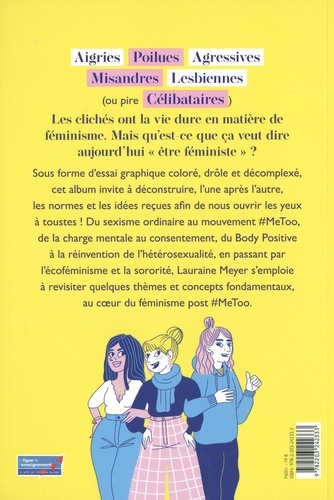Aigries, poilues, agressives, moches, lesbiennes (ou pire, célibataires ! ), les clichés ont la vie dure en matière de féminisme. Mais qu'est-ce que ça veut dire aujourd'hui "être féministe" ? Sous forme d'essai graphique coloré, drôle et décomplexé, cet album invite à déconstruire, l'une après l'autre, les normes et les idées reçues afin de nous ouvrir les yeux à toustes ! Du sexisme ordinaire au mouvement #MeToo, de la charge mentale au consentement, du Body Positive à la réinvention de l'hétérosexualité, en passant par l'écoféminisme et la sororité, Lauraine Meyer s'emploie à revisiter quelques thèmes et concepts fondamentaux, au coeur du féminisme post #MeToo.