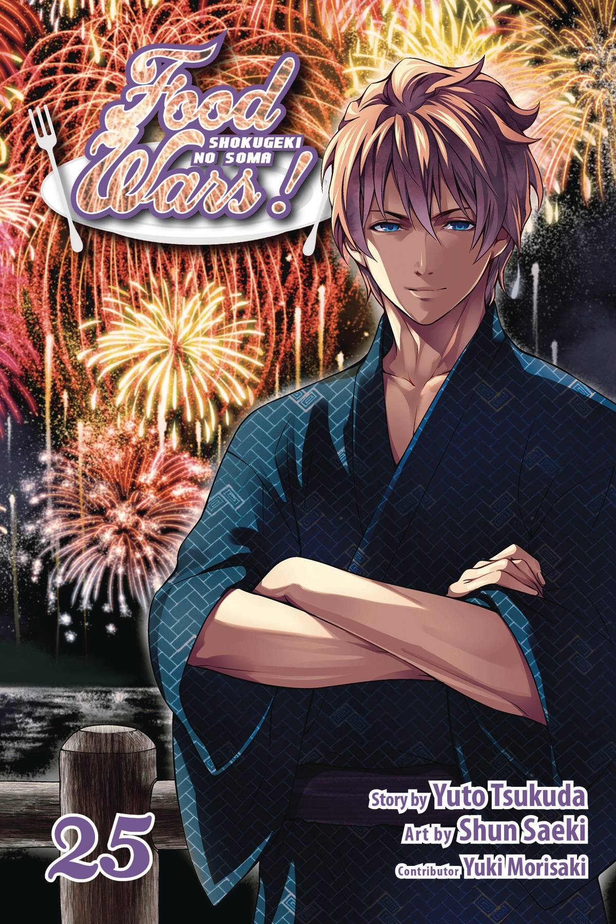The Regiment du Cuisine has begun, and with the weight of their expelled classmates' hopes on their shoulders, Soma, Isshiki and Megishima step up to the plate first for the resistance! In true Soma style, Soma picks soba as his card's theme ingredient, the very ingredient his opponent, Nene Kinokuni, specializes in! How can this very unlucky first-year possibly win now? For older teen audiences.