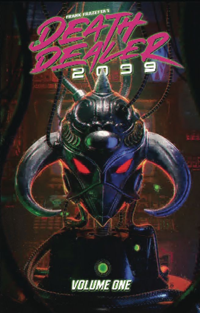 The legend of Frank Frazetta's Death Dealer continues… in 2099! Sword and sorcery meet cybernetics and supercomputers!! Join Andy Belanger (Black Cross, Megadeth) and Tatto Caballero (The Incal, Megadeth) as they explore the next chapter in the saga of the cursed horned helmet, bestowed upon a new warrior in a dark, unforgiving future.