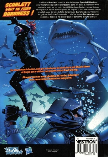 La féroce Scarlett O'Hara prend la tête du commando G. I. Joe Special Missions pour mener une opération clandestine dans les eaux d'Atlantique Nord : mettre la main sur un butin de 40 Milliards de dollars en monnaie Cobra reposant dans la coque d'un navire échoué parmi les requins. C'est exactement ce que projetait de faire aussi la folle dangereuse Baroness, pour retrouver les grâces de Cobra Commander... et c'est là que Serpentor entre en scène, décidé à ne laisser gagner personne d'autre que lui ! Un album bourré d'action par le barbouze du comic book viril Chuck Dixon et le vétéran Paul Gulacy,