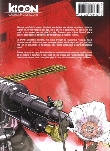 Inkarmat a profité d'un moment de solitude avec Ashirpa pour lui faire une sinistre révélation. D'après elle, le sans-visage ne peut pas être le père de la petite Aïnou, car celui-ci est déjà mort... et son assassin n'est autre que Kiroranke ! Seulement, quand la jeune fille confronte le suspect, Ogata accuse la devineresse de travailler pour le lieutenant Tsurumi... Qui croire ? La suspicion s'installe... Pour ne rien arranger. les voyageurs se retrouvent face à un nouvel obstacle : la bande de voleurs aveugles qui sévit dans la région les a pris pour cible. Anji Toni, son chef, serait l'un des tatoués... mais l'homme semble décidé à vendre chèrement sa peau !