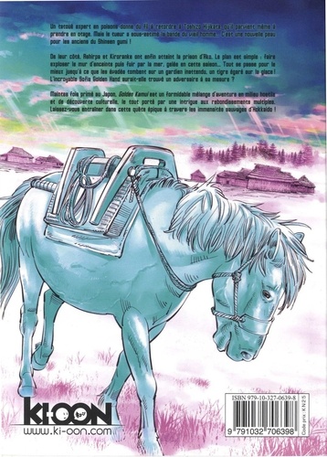 Une chasse au trésor effrénée dans la région la plus sauvage du Japon ! Un tatoué expert en poisons donne du fil à retordre à Toshizo Hijikata, qu'il parvient même à prendre en otage. Mais le tueur a sous-estimé la bande du vieil homme... C'est une nouvelle peau pour les anciens du Shinsen gumi ! De leur côté, Ashirpa et Kiroranke ont enfin atteint la prison d'Ako. Le plan est simple : faire exploser le mur d'enceinte puis fuir par la mer, gelée en cette saison... Tout se passe pour le mieux jusqu'à ce que les évadés tombent sur un gardien inattendu, un tigre égaré sur la glace ! L'incroyable Sofia Golden Hand aurait-elle trouvé un adversaire à sa mesure ?