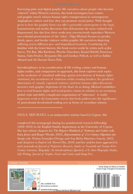 Surveying print and digital graphic life narratives about people who become ‘othered’ within Western contexts, this book investigates how comics and graphic novels witness human rights transgressions in contemporary Anglophone culture and how they can promote social justice. With thought given to how the graphic form can offer a powerful counterpoint to the legal, humanitarian and media discourses that dehumanise the most violated and dispossessed, but also how these works may unconsciously reproduce Western neo-colonial presentations of the ‘other,’ Olga Michael focuses on gender, death, space, and border violence within graphic life narratives depicting suffering across different geo- and biopolitical locations. Combining the familiar with the lesser-known, this book covers works by artists such as Joe Sacco, Thi Bui, Mia Kirshner, Phoebe Gloeckner, Kamel Khélif,Francesca Sanna, Gabi Froden, Benjamin Dix and Lindsay Pollock,as well as Safdar Ahmed and Ali Dorani/Eaten Fish. Interdisciplinary in its consideration of life writing, comics and human rights studies, and comparative in approach,this book explores such topics as the aesthetics of visualised suffering; spatial articulations of human rights violations; the occurrence of violations whilst crossing borders; the gendered dimensions of visually captured violence; and how human rights discourses intersect with graphic depictions of the dead. In so doing, Michael establishes how to read human rights and social justice comics in relation to an escalating global crisis and deftly complicates negotiations of ‘otherness.’ A vitally important work to the humanities sector, this book underscores the significance of postcolonial decolonized reading acts as forms of secondary witness.