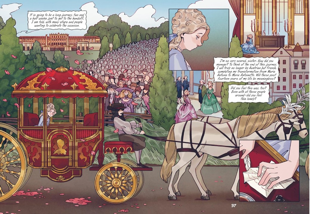 Discover how Marie Antoinette navigated the pressures and obstacles that came with preparing to marry the future king of France, Louis XVI. A story of political maneuvering, royal expectations, and determined resolve, this graphic novel immerses readers in the lesser-known teenage years of France’s most infamous queen—brought to life by gripping narrative and vivid full-color illustrations.