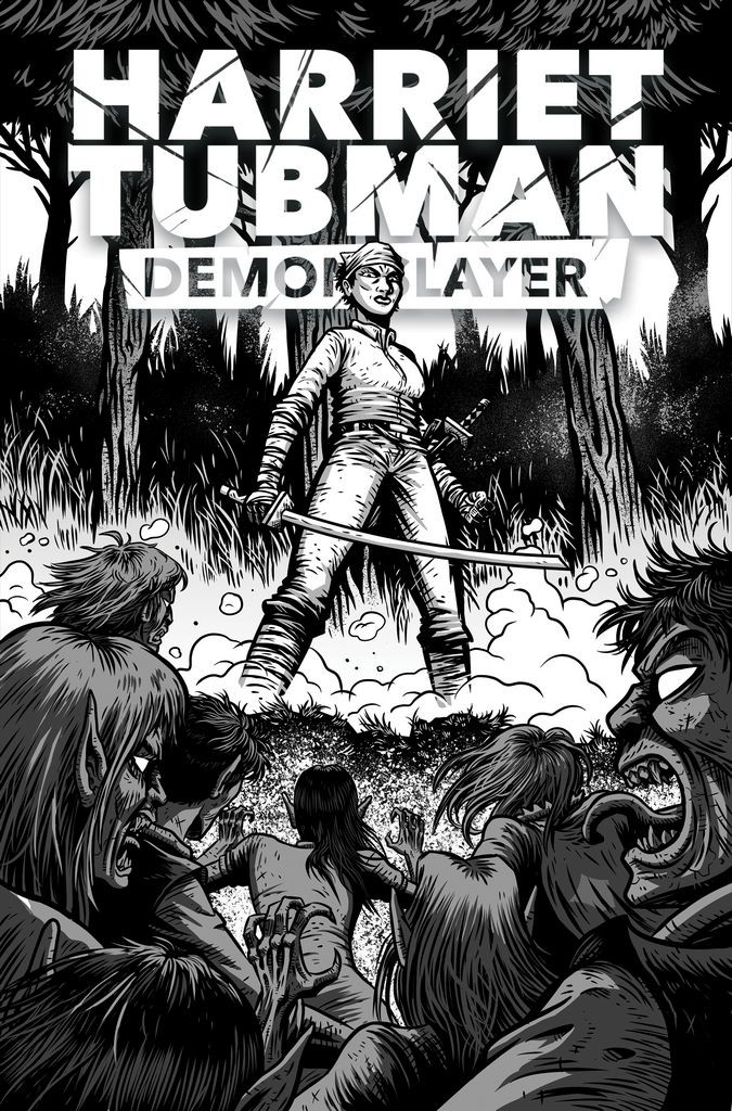 Cover by Luca Vassallo (Sumerian Comics, The Firstborns). Django Unchained meets Buffy The Vampire Slayer in David Crownson's Harriet Tubman : Demon Slayer, a supernatural comic series based on the true life of the freedom fighter herself that is flavored with genre liberties in the spirit of Abraham Lincoln: Vampire Hunter. Soon to be an original series on Disney+! In this double size issue, a stampede of vampires closes in on Harriet and The Edgfields. Our main villian reveals himself!