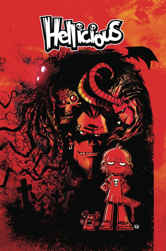 Kit Wallis, the popular artist on titles like Mr. Easta, Good Boy, and Whatnot Publishing's Quested, returns to his roots with this all-new cover for the hard to find first appearance of Hellicious! Don't miss this chance to get these brand new cover releases of the sold out debut issue of Hellicious, soon to be an animated series starring Anthony Kiedis of the Red Hot Chili Peppers! Meet Cherry, the Devil's prankster granddaughter and the cutest grim reaper in Hell. She loves everything about her home - its burning landscapes, its horrific inhabitants, and especially her demonic family - but she's lonely. She might look like a little girl, but she's much too powerful for the imps and the damned inhabitants of the underworld. There's only one soul who Cherry thinks might be a good playmate - Satan-worshipping death metal frontman Briggy Bundy. The bad news is, he isn't dead...Yet. But Cherry won't let a little thing like that keep them apart... and all Hell breaks loose when Cherry defies the order of the afterlife to finally have the best friend she's always wanted.