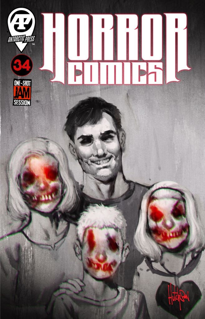 DEATHS IN THE FAMILY! ALL-STAR JAM ISSUE! It's a spine-tingling team-up of terror talent, featuring 'Troupe' by David (Teether) Hutchison! Following an accident, a man awakens from a coma to find his family there to greet him. How can he tell anyone that this isn't his family…because he killed them?