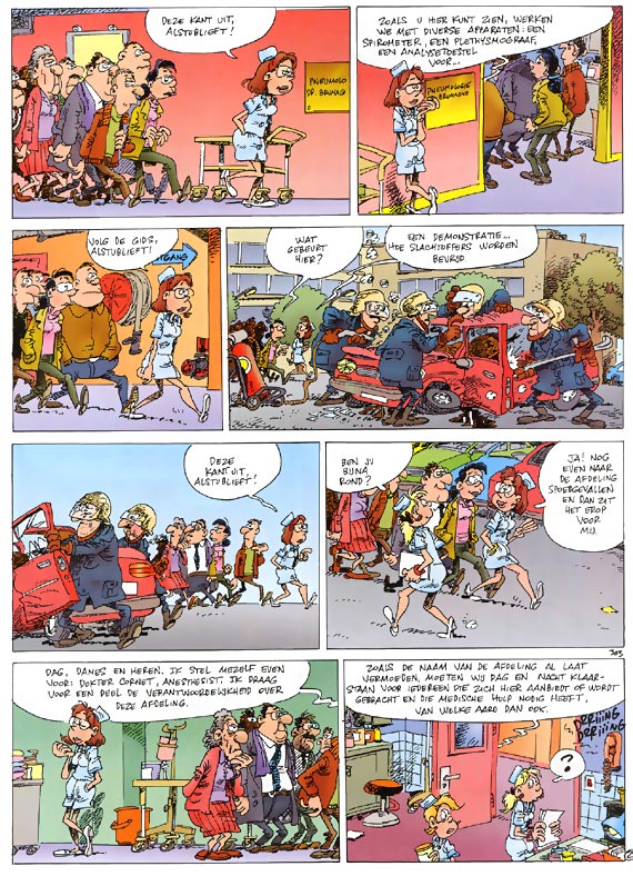 Of het nu gaat om winterkloven, breuken, ontvellingen, schrammen, schaafwonden, krabben of beten, één ding staat als een paal boven water: de verpleegsters (blondines, brunettes of roodharigen) staan altijd klaar om het slachtoffer in te pakken. En dat is een pleister op de wond! Van fractuur tot factuur ... Cauvin en Bercovici, altijd in topvorm, lichten op meedogenloze en humoristische wijze de wereld van de ziekenhuizen door. Van operatiekamer tot uitslaapkamer, van fractuur tot factuur, van verloskamer tot mortuarium, alle aspecten van de openbare ziekenhuizen en de privé-klinieken krijgen de rekening gepresenteerd. Deze reeks wordt al jaren lang verslonden door de leden van de medische en paramedische beroepsgroepen en is daardoor een van de pijlers van onze catalogus geworden. En bij elk nieuw album melden zich nieuwe patiënten bij de afdeling Eerste Hulp!