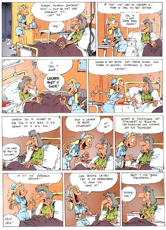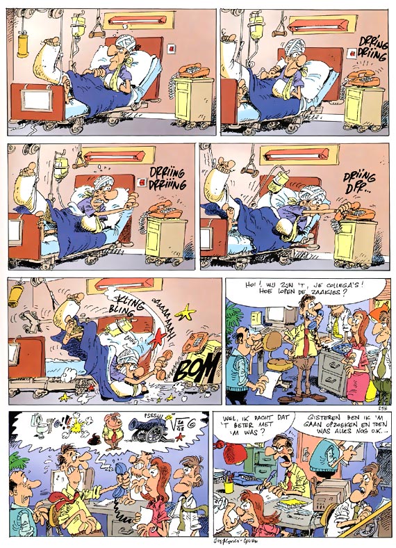 Wie werd er nooit als patiënt opgenomen in een kliniek zonder echt te beseffen wat zich daar achter de schermen afspeelt? Gelukkig maar, want als je Bercovici en Cauvin moet geloven, ontbreekt het in de wit gesteven wereld van chirurgen, verpleegsters en andere gezondheidsspecialisten niet aan cynisme of zotternij. Om het nog niet te hebben over de blunders die er worden begaan. Het is misschien een moeilijk onderwerp, maar deze reeks grappen verzoent ieder van ons met de wereld achter de ziekenhuisdeuren, waar we hoe dan ook ooit in terechtkomen. En dan kun je er maar beter om lachen. Toch?