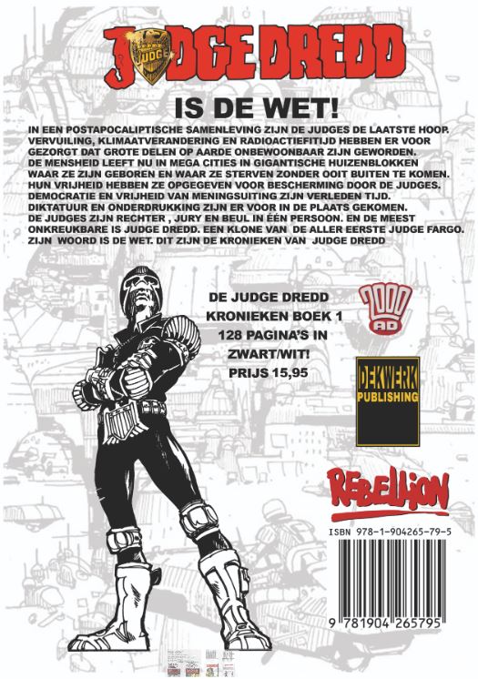 JUDGE DREDD IS DE WET! In een postapocalyptische samenleving zijn de Judges de laatste hoop. Vervuiling, klimaatverandering en radioactiviteit hebben ervoor gezorgd dat grote delen op aarde onbewoonbaar zijn geworden. De mensheid leeft nu in mega cities in gigantische huizenblokken waar ze zijn geboren en waar ze sterven zonder ooit buiten te komen. Hun vrijheid hebben ze opgegeven voor bescherming van de Judges. Democratie en vrijheid van meningsuiting zijn verleden tijd. Dictatuur en onderdrukking zijn er voor in de plaats gekomen. De Judges zijn rechter, jury en beul in één persoon. En de meest onkreukbare is Judge Dredd, een kloon van de allereerste Judge Fargo. Zijn woord is wet. Dit zijn de kronieken van Judge Dredd. Toen uitgeverij Dekwerk in 2023 na ging denken over de mogelijkheden om de verhalen van Dredd uit te geven in Nederland, was de vorm al snel duidelijk: de in Engeland uitgegeven Judge Dredd: The Complete Case Files, die chronologisch alle verhalen van Dredd bundelen, zou de leidraad zijn. Alle Dredd-verhalen zouden voor de Nederlandstalige lezer beschikbaar komen en er komt een einde aan de jarenlange versnippering. Dus vanaf dit jaar tweemaal per jaar een dikke bundeling van 100 pagina's of meer voor een schappelijke prijs. Met 47 jaar aan verhalen op voorraad kan de Dredd-liefhebber voorlopig zijn hart ophalen! Zwart/Wit