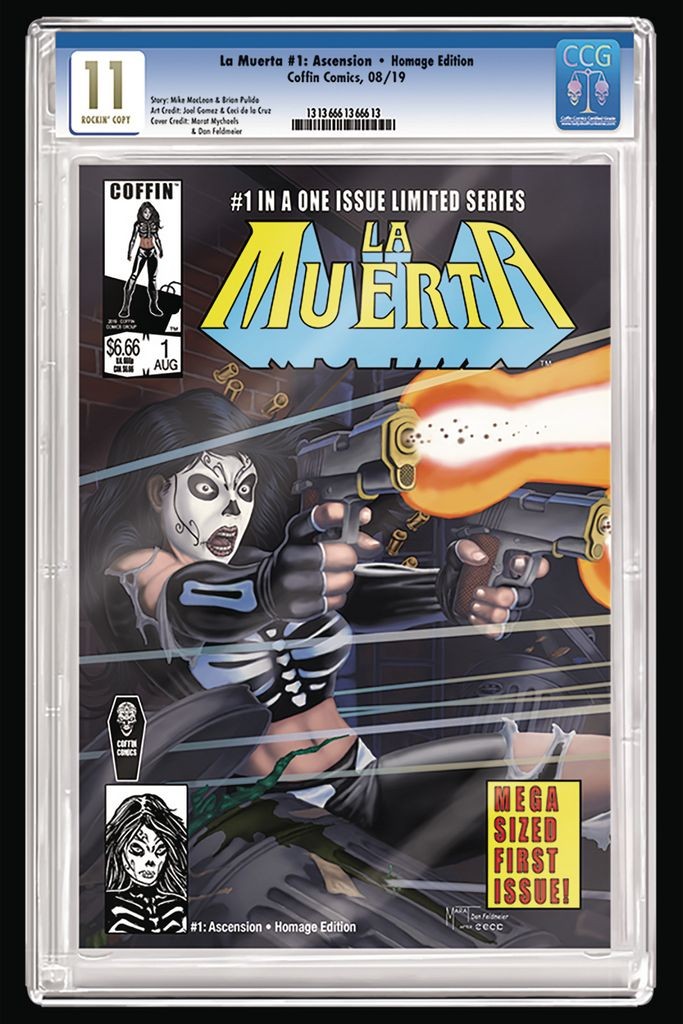 48 pages of story & art! In the aftermath of her trip to the Amazon rainforest, Maria Diaz aka La Muerta learns that a killer stalks the midnight streets of Mexico City, ruthlessly eliminating its criminal elite. Who is this killer? What motivates her murderous ways? And why does she wear the skull face of the infamous vigilante La Muerta? Find out in the pages that follow…