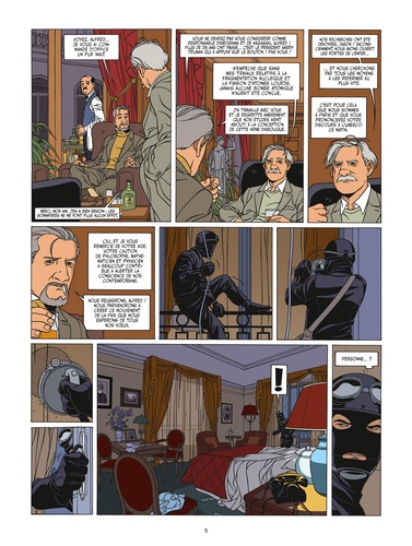 Une série éblouissante, dans la grande tradition du feuilleton policier d'aventures, portée par un Convard au sommet de son art et un Thibert s'imposantdéfinitivement comme le nouveau maître de la Ligne Claire moderne. Le scientifique Jason Purcell est un homme brisé. Mais un homme debout. Car depuis la mort de son compagnon de recherches, Albert Bernstein, Purcell reste le seul responsable des abominations d'Hiroshima et Nagasaki? Dévoré de culpabilité, l'homme a décidé de créer un comité de lutte contre la prolifération des armes atomiques. Initiative louable, mais dangereuse, puisque Purcell est aussitôt assassiné par d'ignobles tueurs, capables d'étrangler leurs victimes à mains nues, mais aussi d'escalader les façades d'immeubles à la seule force de ces mêmes mains... De quoi titiller la curiosité d'un couple d'enquêteurs pas comme les autres : Etienne Kaplan, membre des services secrets français, et Nathan Masson, scientifique réputé. L'enquête peut commencer. Elle sera étourdissante d'action, de rebondissements, mais aussi d'intelligence. Portée par le sublime graphisme de Thibert, mêlant le meilleur des années d'or de la Ligne Claire à une rythmique narrative purement contemporaine, Les aventures de Kaplan et Masson constitue tout simplement la nouvelle série événement de Didier Convard depuis Le Triangle secret. Déjà une référence.