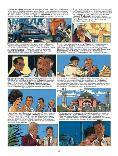 C'est fou ce que la conjugaison d'un grain de sable et de la théorie des dominos peut faire comme dégâts ! Prenez le cas de Mr Quayle. Ce milliardaire US s'apprête à signer un pharamineux contrat avec le Khalakjistan (ex URSS). Enjeu, des mines contenant le fameux germanium que tout le monde s'arrache. Il ne lui reste plus qu'à lever l'option prise à travers sa filiale française et l'affaire est emballée. C'est là qu'intervient le grain de sable sous forme d'un brave paysan traversant une route du Khalakjistan. La valse des dominos s'enclenche. Pour éviter le chariot, un camion français percute la voiture du Ministre de la guerre local qui en avale son bulletin de naissance. Le routier en prend pour trente ans. Sous la pression de son syndicat qui menace de bloquer les routes, Paris boycotte le Khalakjistan. Du coup, l'option de Quayle ne vaut plus que son poids de papier. Seule solution pour relancer le jeu, faire évader le routier. C'est là qu'intervient Wayne Shelton. Une figure. A dirigé à 19 ans des commandos qui menaient la vie dure au Vietcong en lui tombant dessus par le Laos. Une référence. S'est ensuite recyclé contrebandier au Moyen-Orient qu'il connaît, caillou par caillou, de Beyrouth à Kaboul. Pour dix millions de dollars, Shelton va rameuter son ancienne équipe et monter un plan remarquablement vicieux pour libérer le routier. Evidemment d'autres grains de sable vont transformer l'opération montée au millimètre en un enfer mortel. Les survivants seront rares. Et excessivement en colère. Vive la grand aventure ! A mi-chemin entre le commando Caïman de Bruno Brazil et Les douze salopards, la série Wayne Shelton redonne ses lettres de noblesse à la BD qui déménage. Cerise sur le gâteau, Van Hamme (XIII, Thorgal, Largo Winch) a mis au point un festival de ferraille tordue, incendiée, pulvérisée qui a rappelé sa belle jeunesse à Christian Denayer créateur, dans les années 70, de la célèbre série des Casseurs. A l'issue de cette première aventure en deux albums, Jean Van Hamme passe le flambeau à Thierry Cailleteau, créateur d'Aquablue, qui concocte déjà pour Denayer la prochaine aventure de Shelton, seul baroudeur quinquagénaire de la BD !