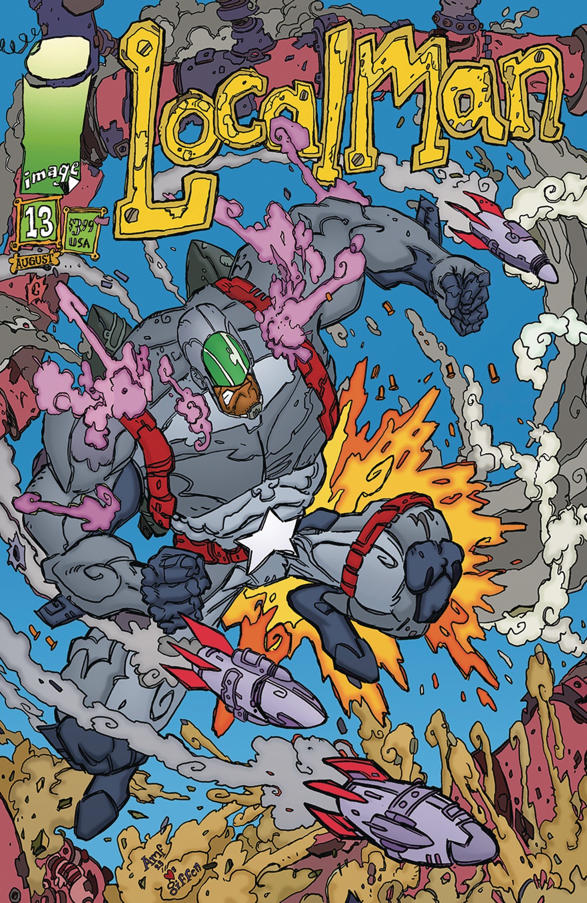 END OF STORY ARC **'Lost Ones' Finale ** Local Man has lost Farmington to forces of Faceless Horde. Now every townsperson is a devout, fanatical member of a sprawling terrorist organization bent on rebooting world-including his own grieving mom. Now Jack is alone and outclassed. Thankfully, he has one thing that makes every Image superhero smile... Lots and lots of big ass guns.