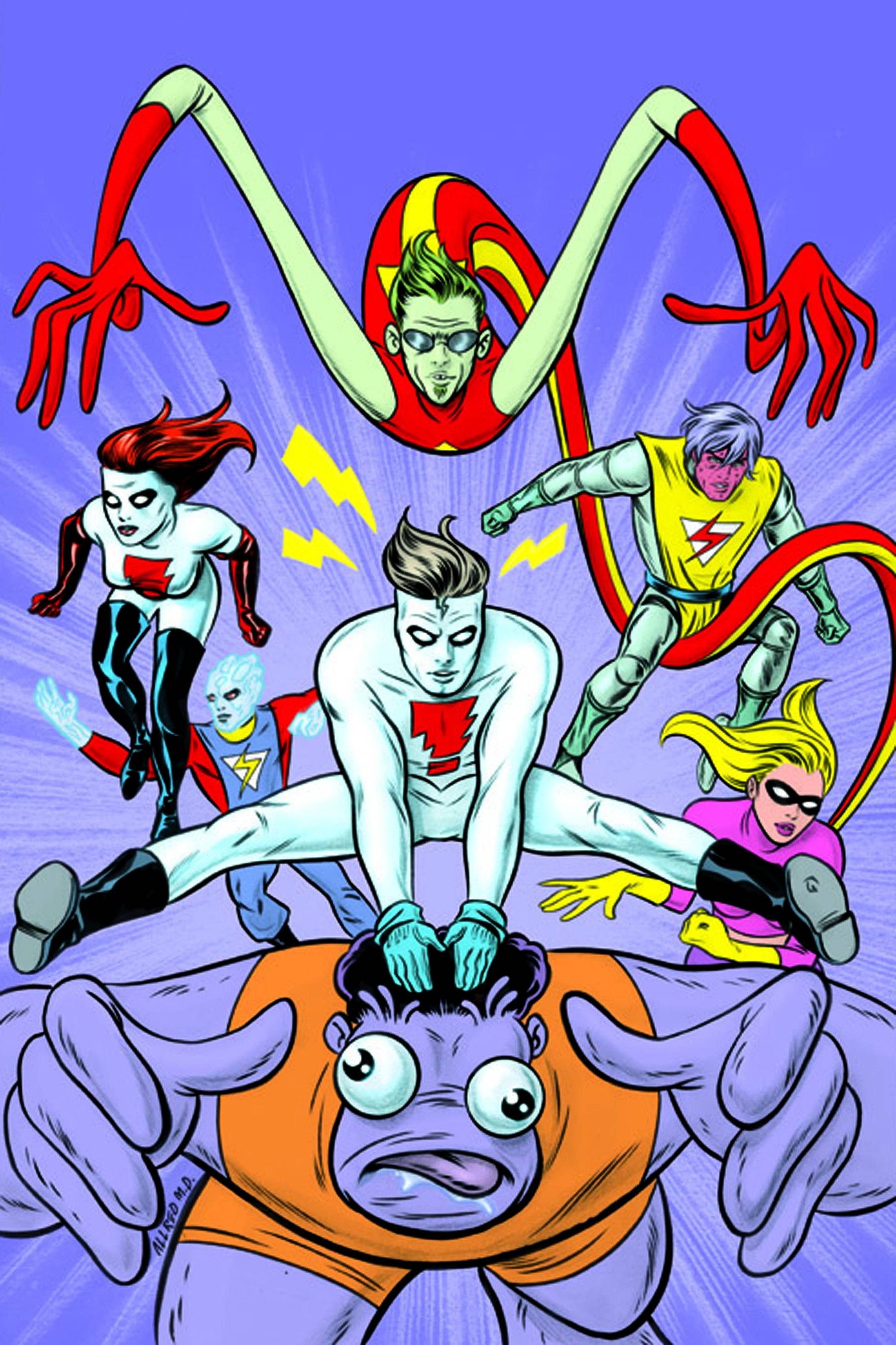 'ELECTRIC ALLEGORIES' The MADMAN ATOMIC COMICS Grand Finale! This volume wraps up MICHAEL ALLRED 's latest inventive and groundbreaking Madman series. This volume includes the entire 'Tweenage Wasteland' story arc where Frank 'Madman' Einstein and the Atomics meet Red Rocket 7.Also included are special episodes guest-starring creators DARWYN COOKE, J. BONE, JOELLE JONES and JAMIE S. RICH.And while Allred is notorious for including massive bonus sections in his collections, this is the biggest yet with rare and unseen goodies as well as an amazing pin-up section including JAMES JEAN, DAVE COOPER, CRAIG THOMPSON, DAVE JOHNSON, JOE QUINONES, JIM RUGG and other greats!