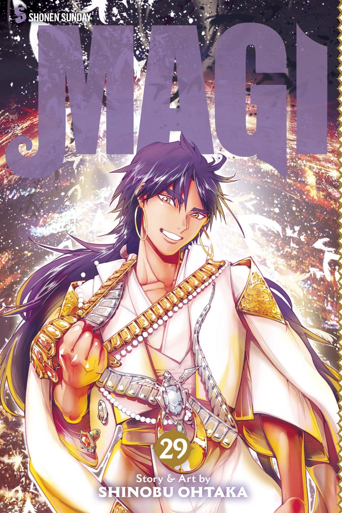 The internal strife within the Kou Empire comes to a resolution, and a great price must be paid for peace. Once-powerful nations find themselves humbled, and the world is changing once again. Elsewhere, the long-absent Alibaba and Judar continue their strange journey with the Primeval Dragon, and learn a shocking truth about Sinbad... For teen audiences.