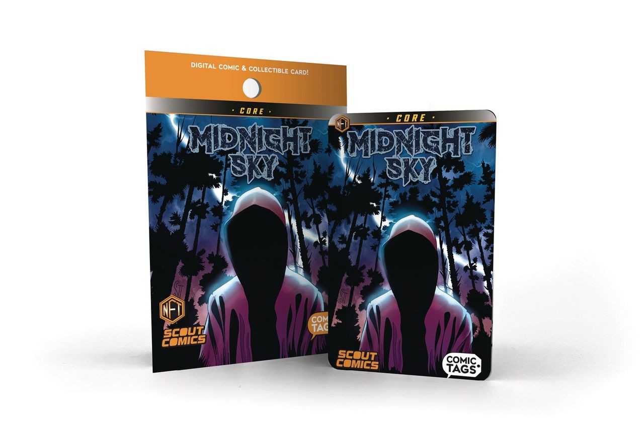 Making digital comics collectible! Now in trading card format called the CORE edition.These cards are individually to numbered (1000), Polygon energy efficent NFT Comic Tag! This collectible card also contains a EPUB NFT of the entire Midnight Sky series (Chapters 1-8)! What would you do if you discovered your son wasn't really your son? He may look like him, act like him, but deep down in your soul, you just know... that he's been replaced. Then your worst fears are realized when the light hits his face just right and you accidentally see his true appearance for yourself. Do you scream? Do you run? Or do you fight back?
