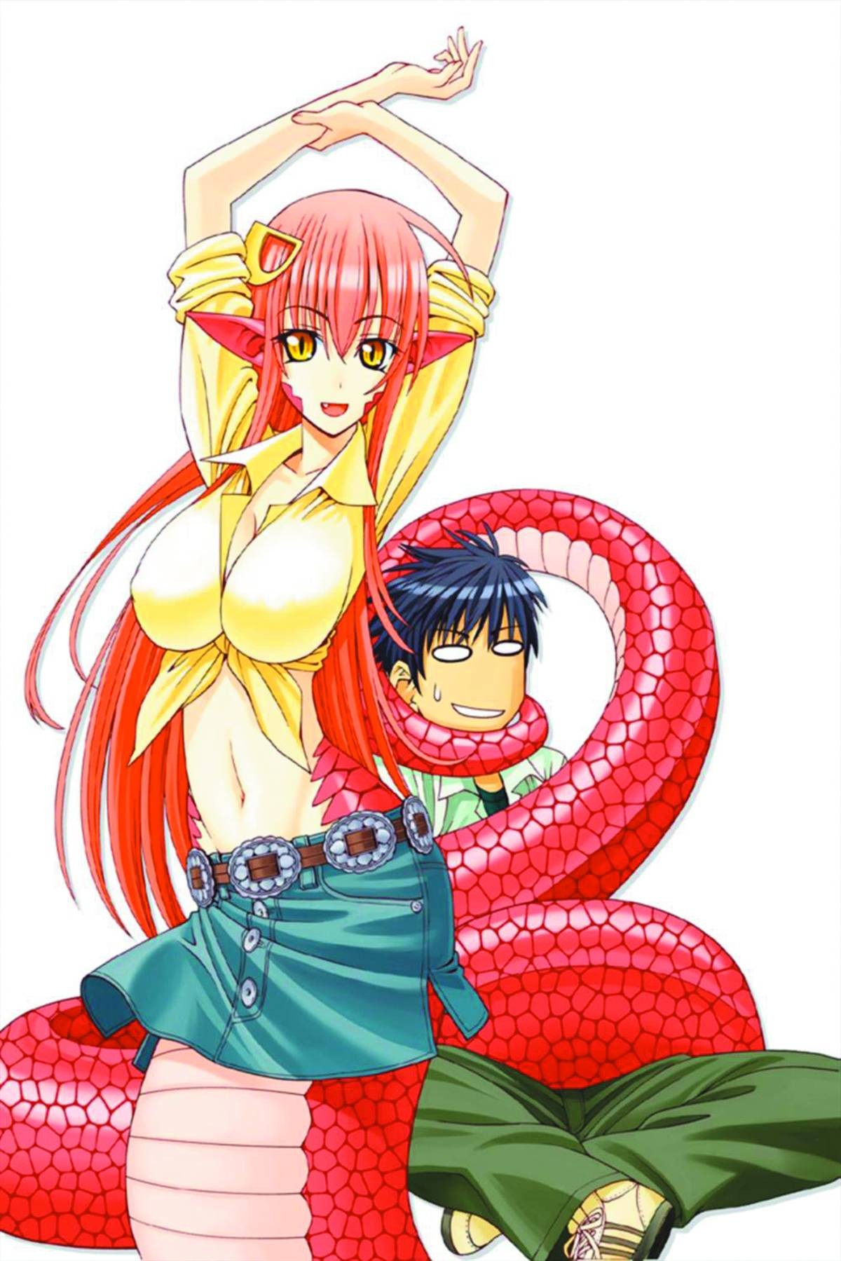 Monsters - they're real, and they want to date us! Three years ago, the world learned that harpies, centaurs, catgirls, and all manners of fabulous creatures are not merely fiction; they are flesh and blood, not to mention scale, feather, horn, and fang. When a hapless human teenager named Kurusu Kimihito is inducted into a government exchange program, his world is turned upside down. A snake-like lamia named Miia comes to live with him, and it is Kurusu's job to take care of her and make sure she integrates into his everyday life. Unfortunately for Kurusu, Miia is undeniably sexy, and the law against interspecies breeding is very strict. Even worse, when a ravishing centaur girl and a flirtatious harpy move in, what's a full-blooded teenage human with raging hormones to do?