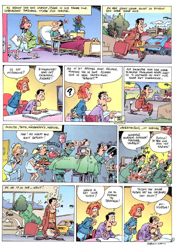 Wie werd er nooit als patiënt opgenomen in een kliniek zonder echt te beseffen wat zich daar achter de schermen afspeelt? Gelukkig maar, want als je Bercovici en Cauvin moet geloven, ontbreekt het in de wit gesteven wereld van chirurgen, verpleegsters en andere gezondheidsspecialisten niet aan cynisme of zotternij. Om het nog niet te hebben over de blunders die er worden begaan. Het is misschien een moeilijk onderwerp, maar deze reeks grappen verzoent ieder van ons met de wereld achter de ziekenhuisdeuren, waar we hoe dan ook ooit in terechtkomen. En dan kun je er maar beter om lachen. Toch?