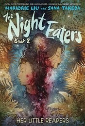 It's been four months since the night of gore, chaos, and the failed demonic summoning that revealed the Ting twins' unusual family background. Since then, Milly and Billy have tried to explore their new powers but abundantly clear: the Ting family is part of a much larger supernatural world and something in that world is very, very wrong. s Ipo and Keon are reluctantly drawn back into the treacherous high society of supernatural elites, their children find that dealings with the spirit world comes at a steep price-when the dead have unfinished business with the living, only blood can balance the scales. To save humanity and themselves, the Tings will have to embrace their inner demons. Eisner Award-winning and bestselling author Marjorie Liu and illustrator Sana Takeda have done it again, spinning an epic tale of gods and monsters in Her Little Reapers that will leave readers hungry for more. The PREVIEWS Exclusive signed edition with an exclusive cover will be limited to 2,500 copies.