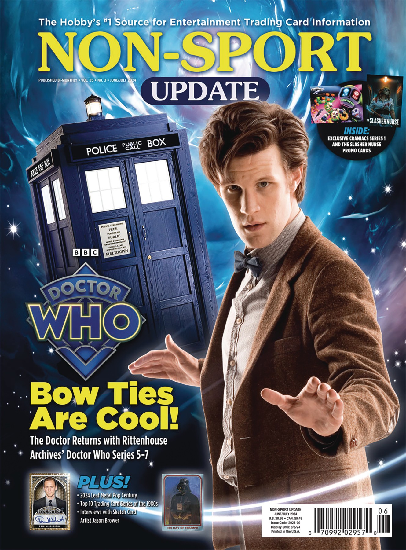 Every issue of Non-Sport Update magazine brings trading card collectors news on the latest in non-sport and entertainment cards (Star Wars, Marvel, Star Trek etc.). Feature stories are devoted to new releases and the classic trading cards of the 50s and 60s. Non-Sport Update's big 32-page price guide provides current values for thousands of the most popular non-sport series. Departments focus on auction highlights, a list of upcoming releases, top 10 lists, what's trending in non-sports, collector interviews, and more. Each issue includes sample promotional cards.