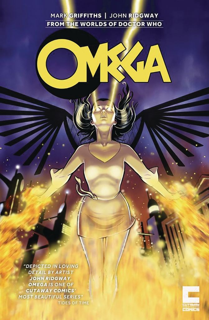 Omega is a graphic novel collecting the 2021 mini-series by Mark Griffiths and legendary British artist John Ridgway, featuring super-villain Omega created by the Oscar winning Bob Baker and who first appeared in the worlds of classic Doctor Who. The people of Minyos are in revolt against their alien gods. The chaos is being stoked by the rogue god, Omega who longs to free himself from his black hole prison and wreak revenge. But brave Princess Malika, last of the Minyan Royal Family is determined to lead the fight back.