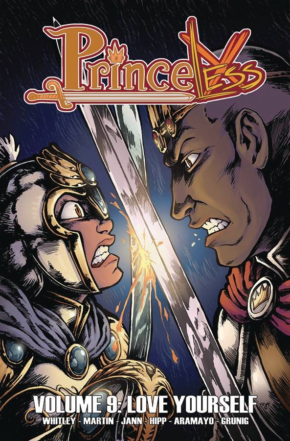 With only one more volume left until our epic conclusion, Princeless Volume 9 is the biggest and most intense the series has ever been. Adrienne has one last sister left to save, but she's going to have to go through a maze, a minotaur, and her own father to get there. And far away in the woods of the elves Devin, Tempest, Kira, and Noni have been taken captive. They're all in danger and the only one who can save them is Tempest. Is she really the daughter of the fallen elf king and queen? Everyone is waiting for her to wake up to find out.