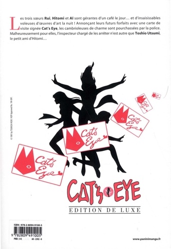 Les trois soeurs Rui, Hitomi et Aï sont gérantes d'un café le jour... et d'insaisissables voleuses d'oeuvres d'art la nuit ! Annonçant leurs futurs forfaits avec une carte de visite signée Cat's Eye, les cambrioleuses de charme sont pourchassées par la police. Malheureusement pour elles, l'inspecteur chargé de les arrêter n'est autre que Toshio Utsumi, le petit ami d'Hitomi...