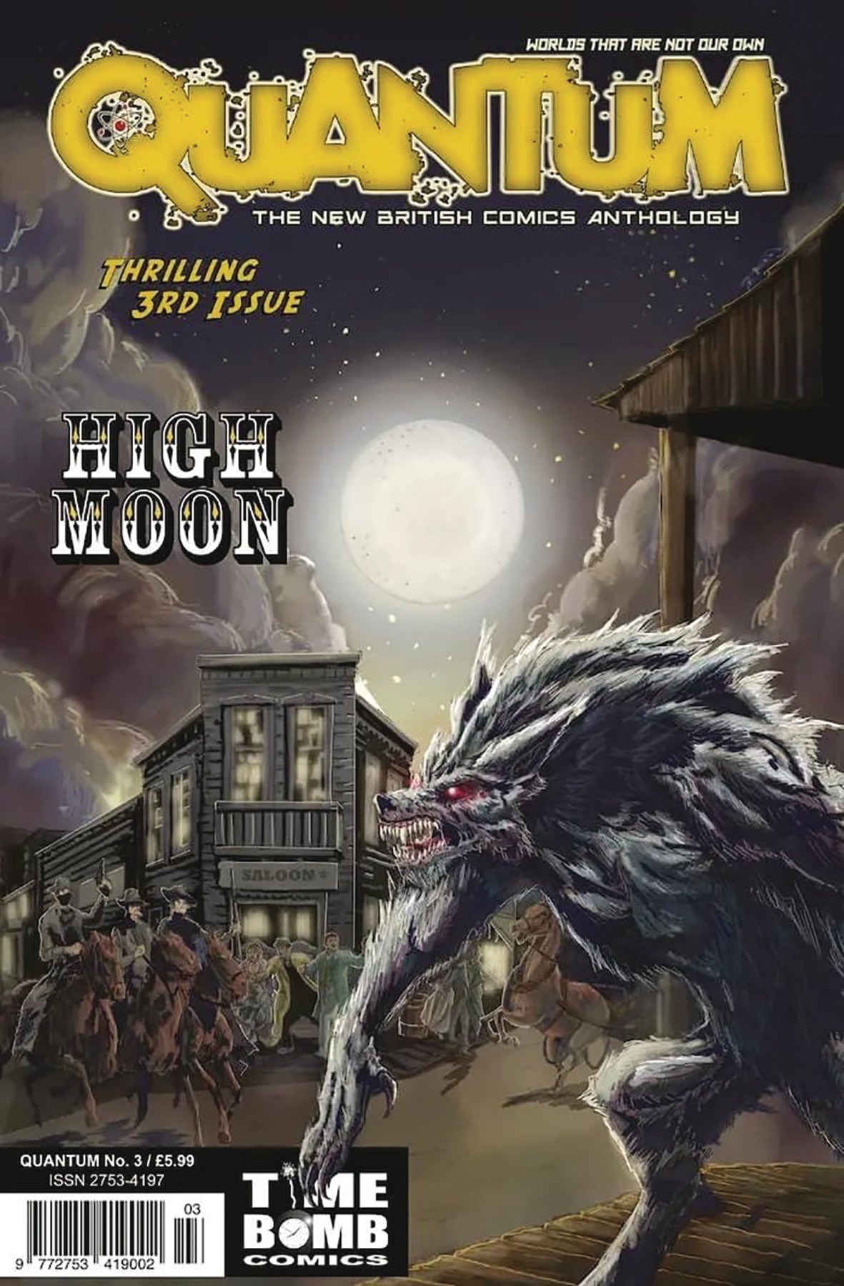 Issue #3 of the smash-hit new British anthology Quantum is a perfect bound, 52-page, US format colour anthology, featuring 5 ongoing tales set in worlds that are not our own. Major Rakhana (Steve Tanner and Pete Woods), WesterNoir-Moon Cursed (Dave West,Jemma West and Joseph Parangue), Memphis (David Morris), Whatever Happened To The World's Fastest Man? (Dave West and Marleen Lowe) and Death & Taxes (Katie Cunningham and Tom Newell)!