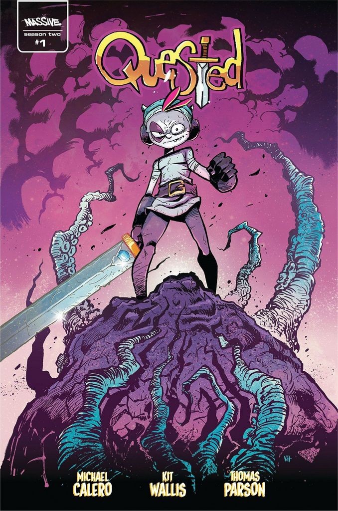 Cover by Kit Wallis, the artist behind such series as Mr Eastah, Warcorns, Good Boy, Hellicious, and the series artist on QUESTED! The misadventures continue in a brand new season of Quested by writers Michael Calero (Alpha Betas, Sumerian's American Psycho) and Thomas Parson, with art by Kit Wallis (Good Boy, Mr.Easta). 'Episode 1: Lothar's Inferno.' All hell breaks loose in the land of Faerbraun as Jinx embarks on an epic journey through the Underbraun with an unlikely companion. Pursued by his former right hand man Hamo, it's a race against time as Jinx attempts to save his father, the mythic hero Lothar. While the two comrades face off in the land of the dead, only Lithia remains to defend Faerbraun from the dire effects of opening the door to the underworld.