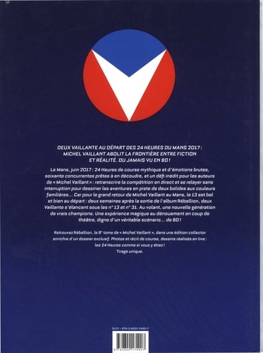Tombé dans le coma à la suite d'un accident, Jean-Pierre, le frère de Michel et mythique "Pilote sans visage", a perdu son combat contre la mort. Trois générations de Vaillant sont sous le choc, brisées après le désastre qui a frappé l'écurie. Henri, le père, ne trouvera de repos qu'en obtenant justice, dût-il régler lui-même ses comptes avec celui qu'il considère désormais comme un assassin : Ethan Dasz, responsable du démantèlement de Vaillante et coupable aux yeux du patriarche d'avoir poussé son fils à un acte désespéré. C'est pourtant aux plus sombres heures que l'espoir renaît : grâce au génie de Patrick, le fils de Michel, les innovations high-tech de Now Future permettent à une Vaillante révolutionnaire de s'engager aux 24 Heures du Mans ! Après dix ans d'absence, Michel retourne sur le circuit de la Sarthe, en compagnie de Nicolas Prost et d'un troisième équipier : la Québecoise Elsa Tainmont, pilote exubérante à la conduite intuitive. Ce sera l'unique chance pour la marque comme pour le clan de se relever. Mais la team peut-elle se fier à Elsa, électron libre au comportement imprévisible ? Michel Vaillant aura-t-il la force d'affronter les soupçons que la justice suisse fait naître au sein de sa propre famille ? Car à Genève, les autorités ont ouvert une enquête : c'est suspecté d'homicide que Michel prend le départ des 24 Heures du Mans... Avec des scènes de course qui rappellent pourquoi Michel Vaillant est la plus grande BD de sport automobile, une parfaite maîtrise de la tension et des tonalités plus sombres, ce nouvel opus nous plonge dans la tourmente aux côtés de son protagoniste. Un vent de rébellion souffle sur le clan Vaillant !