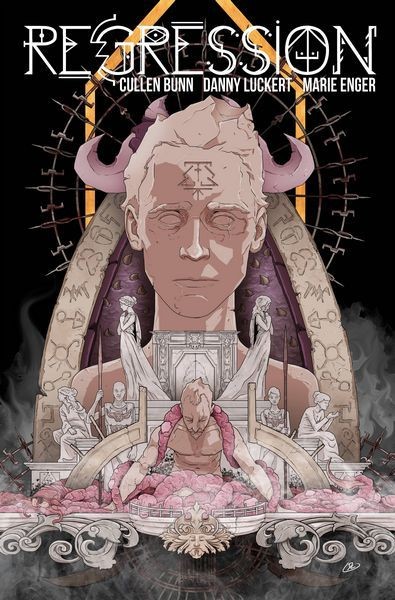 Plagued by ghastly waking nightmares, Adrian reluctantly agrees to past-life regression hypnotherapy. As his consciousness is cast back through time, Adrian witnesses a scene of horrific debauchery and diabolism. Waking, he is more unsettled than before, and with good reason-something has followed him back. Adrian descends into a world of occult conspiracy, mystery, reincarnation, and insanity from which there is no escape. CULLEN BUNN (Harrow County, The Sixth Gun, The Empty Man), DANNY LUCKERT (Haunted), and MARIE ENGER (Pistolwhip, 2 Sisters) present a tale of supernatural terror and intrigue unlike any horror comic you've ever experienced. Collects REGRESSION #1-5