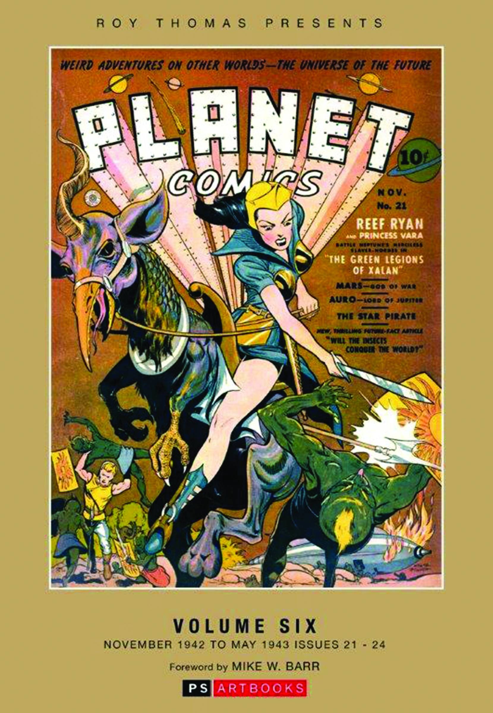 PS Artbooks is continuing its epic journey 'out of this furshlugger world' with the sixth volume of the groundbreaking Planet Comics that appeared from Fiction House. They're all here - Flint Baker, Reef Ryan, The Space Rangers, Gale Allen, Star Pirate, Mysta of the Moon, Norge Benson, plus many more and a bevy of the most scantily-clad females you're likely to see! Collects issues #21-24 (November 1942 to May 1943) of the original titles from Fiction House.