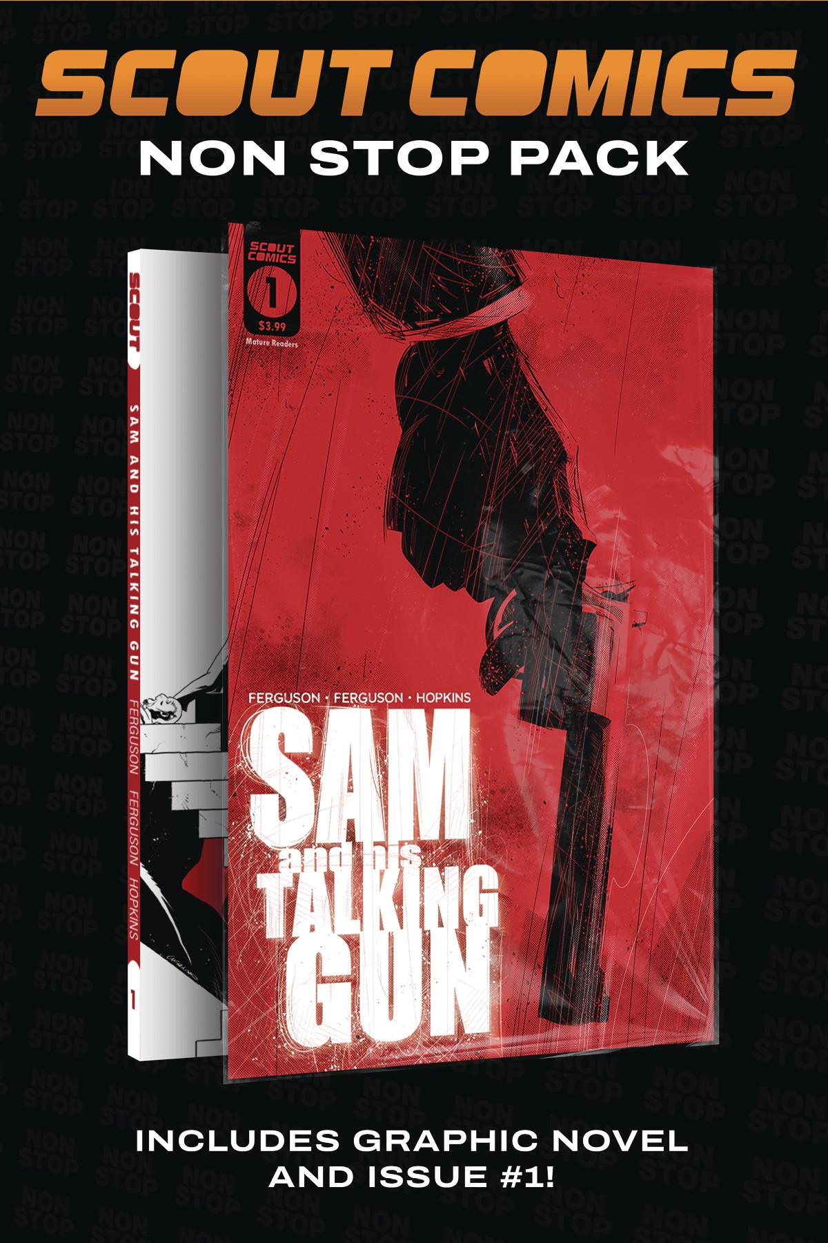 A Scout Legacy collector's pack! This beautifully designed hangable package (measures 8 1/2' x 12 3/4') includes a collectible first issue (bagged and boarded) and the complete trade paperback! Sam stands in a room full of bodies, blood, and broken things. There is only one thing on his mind, there is only one thing that matters-Colt. His brother, by choice, not blood. Colt, the one who put a bullet through the only other person Sam cared about. The one who broke Sam's mind... and left the shattered pieces in a locked room. But now, Sam is back. He has his talking Gun. And no matter the cost, no matter the consequence-Colt has to pay.
