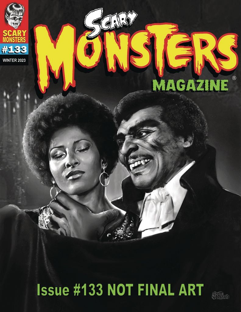 Our Scary Monsters 133rd Blood Suckin' Gore-Guzzlin' Issue puts the scary spotlight on classic yet underappreciated vampire films, including Blacula, The Return of Count Yorga, Blood of Dracula, House of Dark Shadows, Fright Night, Love at First Bite, and many more! Plus, fan favorite columns Kaiju Korner, Strange Days, Trilogy of Terror, and Roomies from the Tomb on square-bound retro pulp pages.